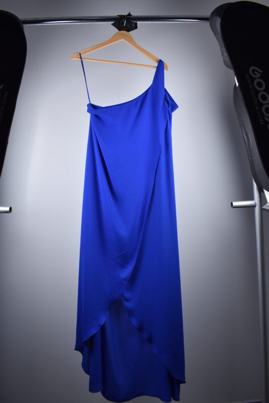 Vestido azul de señorita con una sola manga